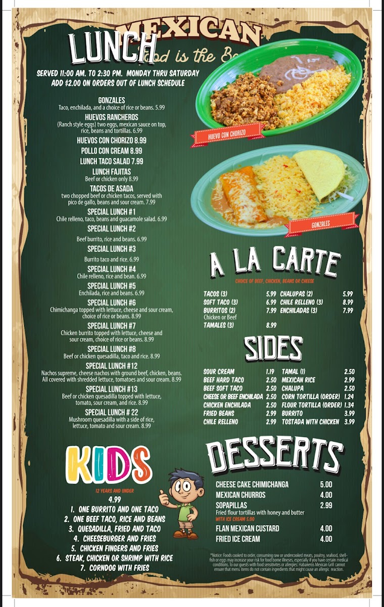 Habaneros Mexican Grill - Lewisburg Menu